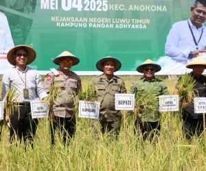 Bupati Luwu Timur, H. Irwan Bachri Syam, bersama unsur Forum Koordinasi Pimpinan Daerah (Forkopimda) Lutim menghadiri panen raya padi di Desa...