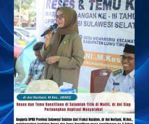 Malili, potretlutim..com — Anggota DPRD Provinsi Sulawesi Selatan dari Fraksi Nasdem, dr Ani Nurbani, M.Kes., melaksanakan kegiatan Reses dan Temu...