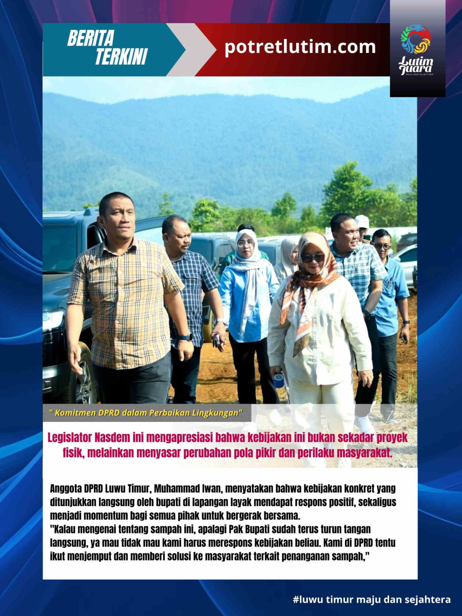 Anggota DPRD Luwu Timur, Muhammad Iwan, menyatakan bahwa kebijakan konkret yang ditunjukkan langsung oleh bupati di lapangan layak mendapat respons positif, sekaligus menjadi momentum bagi semua pihak untuk bergerak bersama.