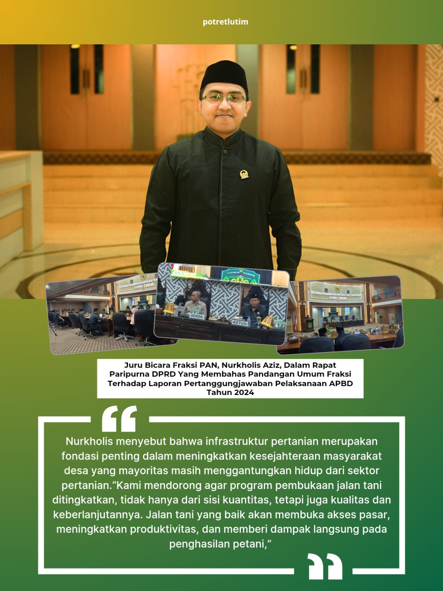 Fraksi PAN menyoroti bahwa pembangunan infrastruktur pertanian harus menjadi prioritas, terutama di wilayah-wilayah yang selama ini sulit dijangkau karena minimnya akses jalan.