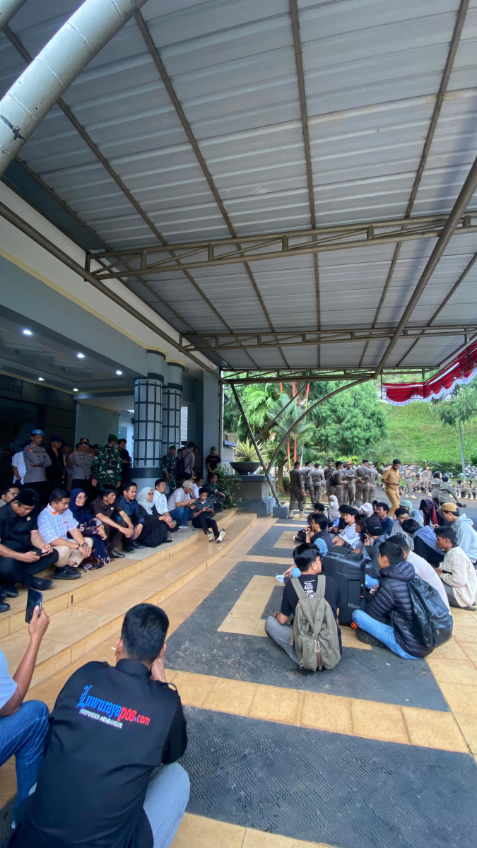 Ketua DPRD Luwu Timur, Ober Datte, didampingi Wakil Ketua Jihadin Peruge dan Hj Harisah Suharjo, bersama pimpinan fraksi dan anggota dewan lainnya, memilih untuk duduk bersama para mahasiswa.