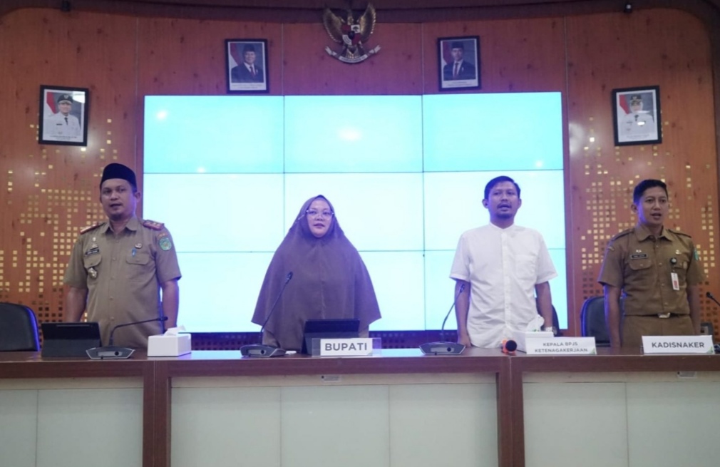 Asisten Pemerintahan dan Kesejahteraan Rakyat, Aini Endis Anrika, saat mewakili Bupati menyampaikan apresiasi kepada BPJS Ketenagakerjaan atas terselenggaranya kegiatan ini.