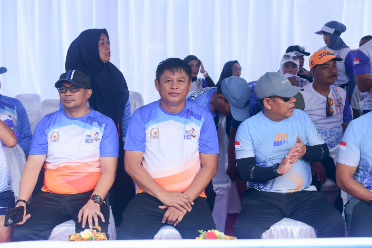 Para Anggota DPRD Luwu Timur turut ambil bagian dalam kegiatan ini. Terlihat hadir Ketua DPRD Luwu Timur Ober Datte, Wakil Ketua II Harisa bersama sejumlah legislator seperti Firman Udding, Sarikawi, Rusdi Layong, Firman Uddin, dan Aprianto, S.Kep., yang ikut berlari bersama masyarakat.