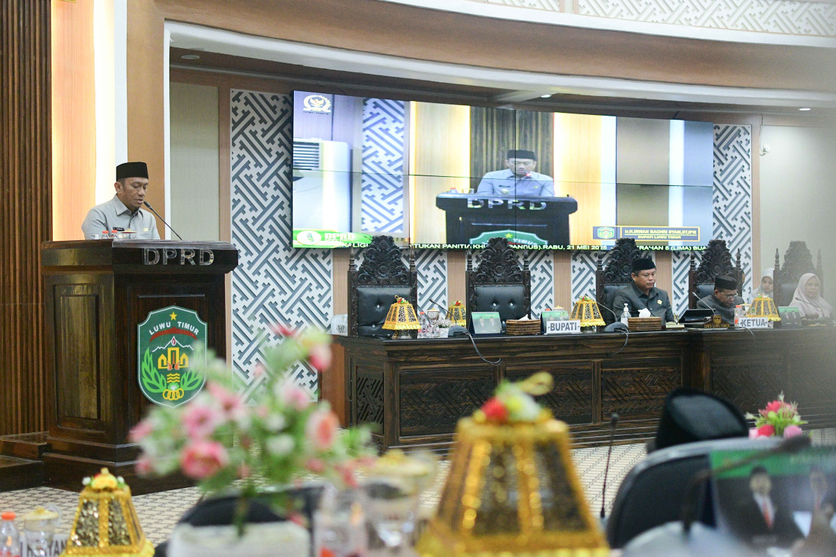 potretlutim.com – Bupati Luwu Timur, Ir H Irwan Bachri Syam ST IPM, menyerahkan lima Rancangan Peraturan Daerah (Ranperda) penting dalam Sidang Paripurna DPRD Luwu Timur, Rabu 21 Mei 2025.