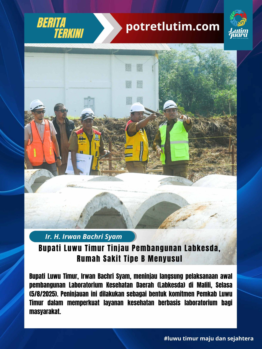 LUWU TIMUR, potretlutim.com – Bupati Luwu Timur, Irwan Bachri Syam, meninjau langsung pelaksanaan awal pembangunan Laboratorium Kesehatan Daerah (Labkesda) di Malili, Selasa (5/8/2025).