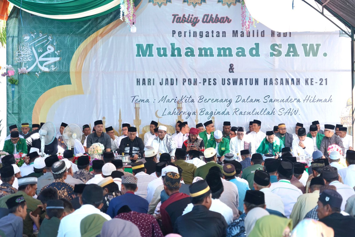 Sebagai wujud mempererat silaturahmi sekaligus memperkuat nilai-nilai keagamaan di tengah kehidupan bermasyarakat, Bupati Luwu Timur, Irwan Bachri Syam menghadiri peringatan Maulid Nabi Besar Muhammad SAW 1447 Hijriah yang dirangkaikan dengan Hari Jadi ke-21 Pondok Pesantren Uswatun Hasanah, Desa Pepuro, Kecamatan Wotu, Ahad (21/09/2025).