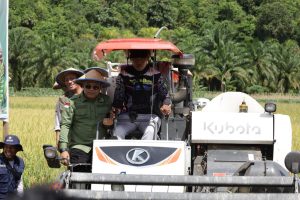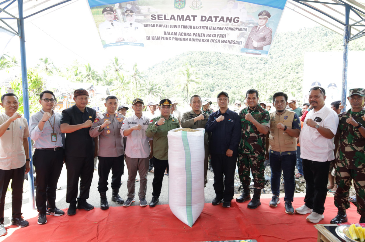 potretlutim.com – Bupati Luwu Timur bersama jajaran Forum Koordinasi Pimpinan Daerah (Forkopimda) menghadiri kegiatan Panen Raya Padi di Kampung Pangan Adhyaksa, Desa Wanasari, Kecamatan Angkona, Minggu (4/5/2025).