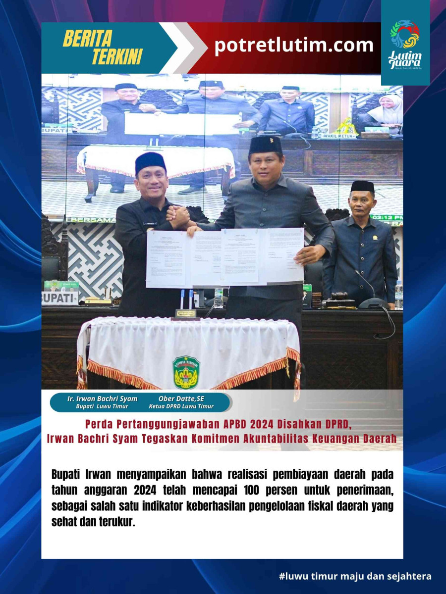 Paripurna ini dihadiri pula oleh unsur Forkopimda, Sekda, pimpinan OPD, tokoh masyarakat, serta berbagai elemen lainnya. Persetujuan bersama ini menandai komitmen DPRD dan Pemda Luwu Timur dalam mendorong tata kelola pemerintahan yang transparan, bertanggung jawab, dan berpihak pada kesejahteraan rakyat. (Cl/Red)