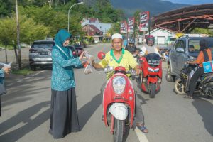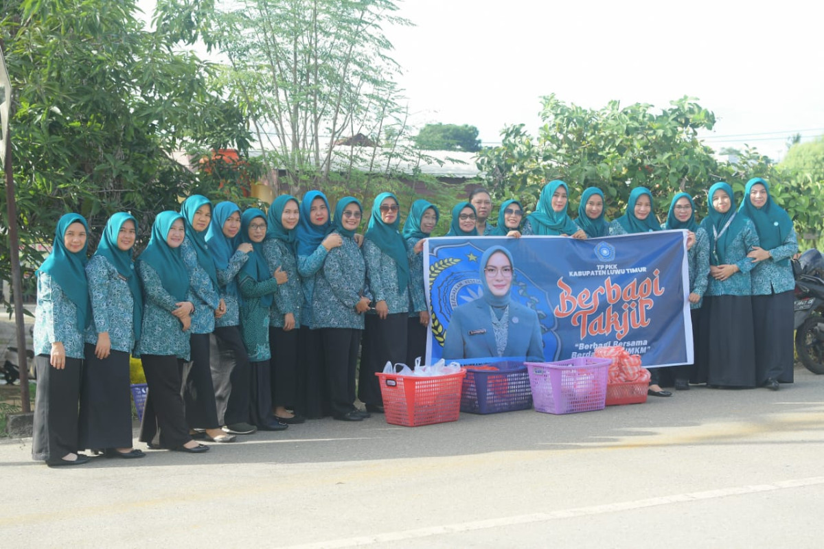 Staf Ahli Tim PKK, Hj. Haslinda Wahab, bersama Koordinator bidang kesejahteraan keluarga, Hj. Heriwati, dan seluruh pengurus Tim PKK Kabupaten Luwu Timur, aksi ini bertujuan untuk memberikan kebahagiaan kepada masyarakat yang sedang menjalankan ibadah puasa.