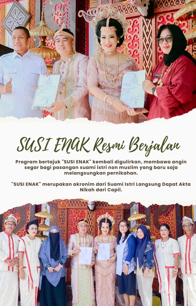 Kali ini, program bertajuk “SUSI ENAK” kembali digulirkan, membawa angin segar bagi pasangan suami istri non muslim yang baru saja melangsungkan pernikahan.