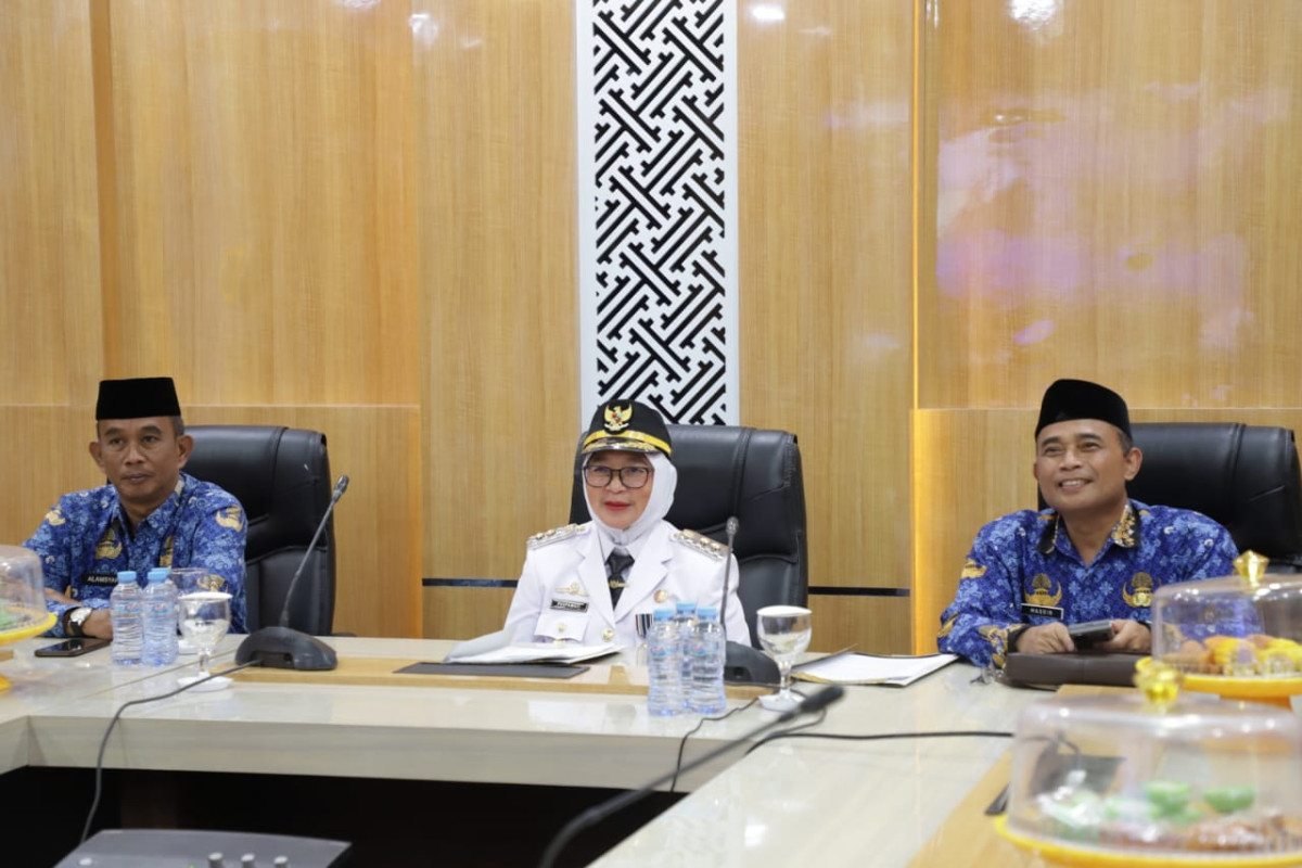 Wakil Bupati Luwu Timur, Hj. Puspawati Husler, mengikuti Upacara Peringatan Hari Otonomi Daerah (Otda) ke-XXIX Tahun 2025 yang digelar secara virtual melalui Zoom Meeting, Jumat (25/4/2025).