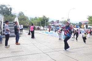 Sementara Instruktur Senam Sehat, Zin Iyos, mengungkapkan rasa senangnya atas kehadiran Bupati di tengah-tengah mereka.