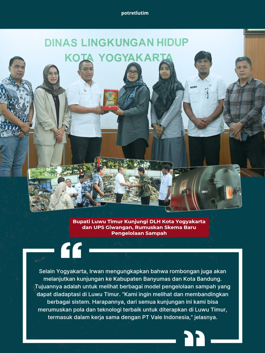 YOGYAKARTA, potretlutim.com — Dalam upaya membenahi persoalan sampah yang kian mendesak, Bupati Luwu Timur, Irwan Bachri Syam, memimpin rombongan kunjungan kerja ke Dinas Lingkungan Hidup (DLH) Kota Yogyakarta dan Unit Pengolahan Sampah (UPS) Giwangan, Jumat (11/7/2025).